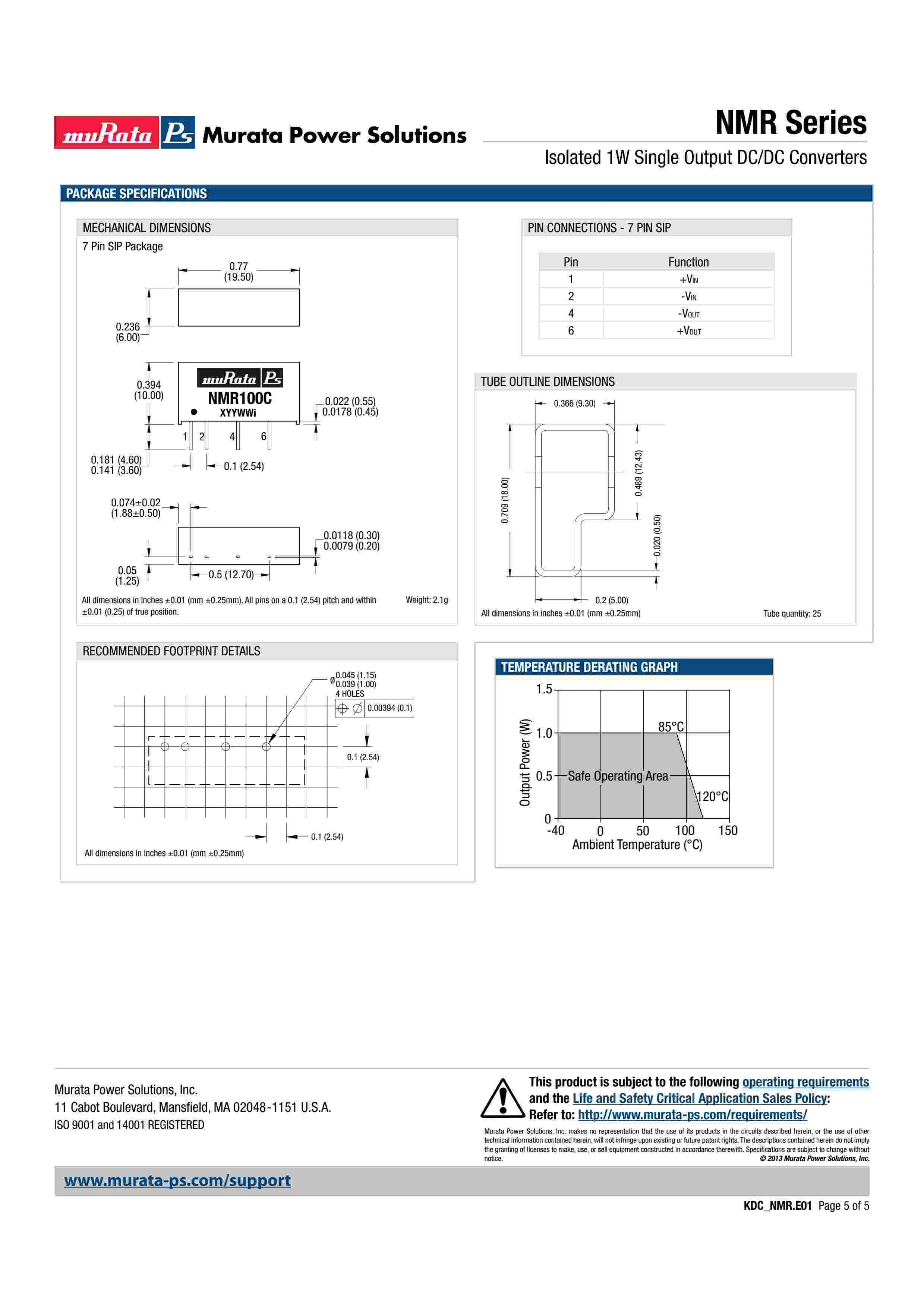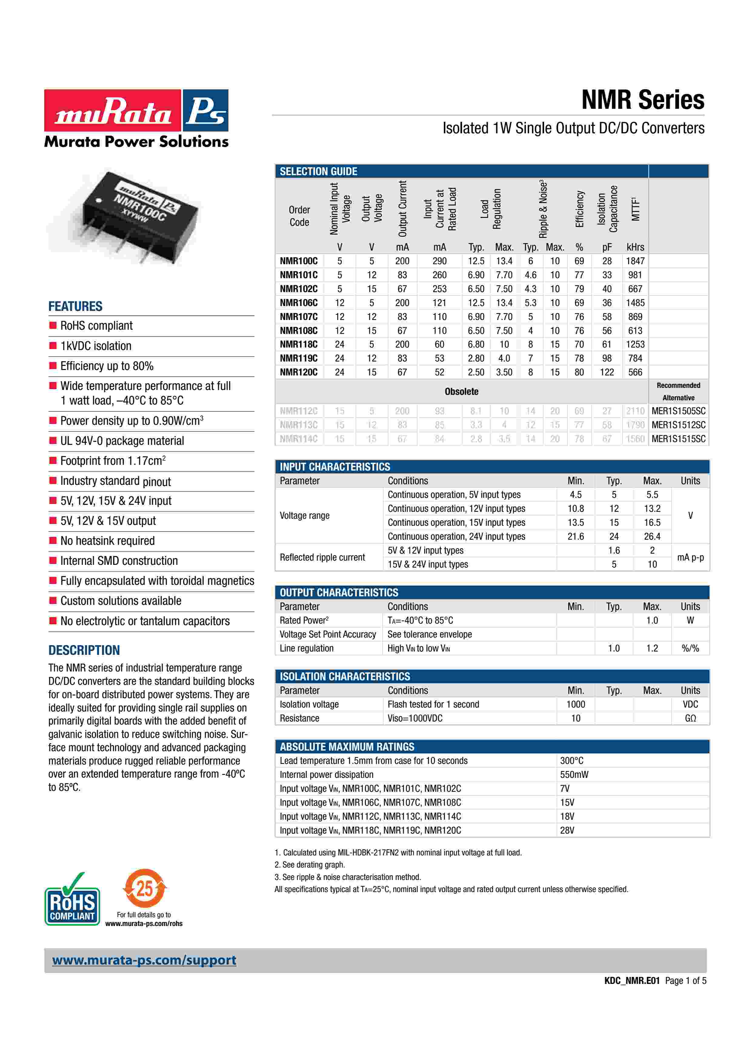 Isolated 1W Single Output DC/DC Converters