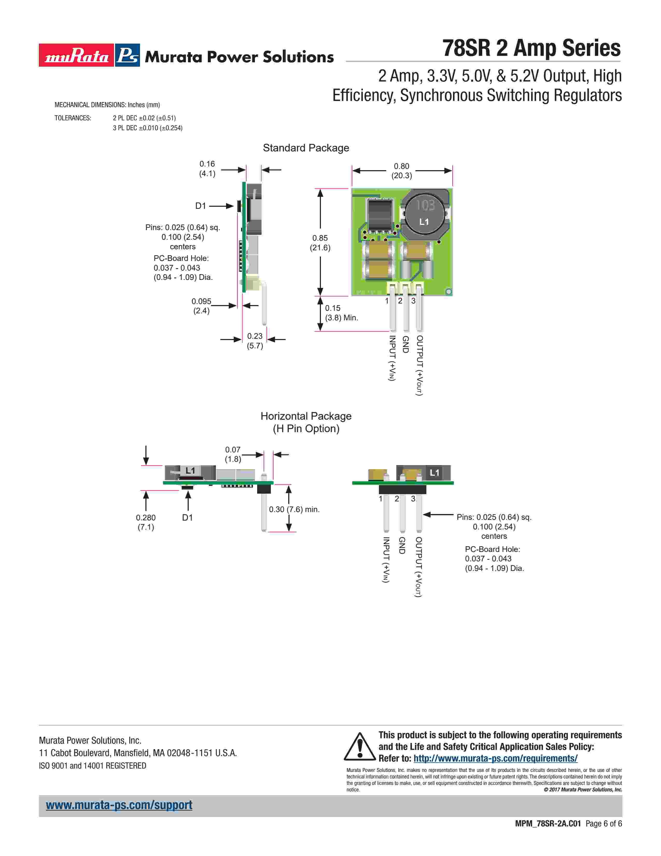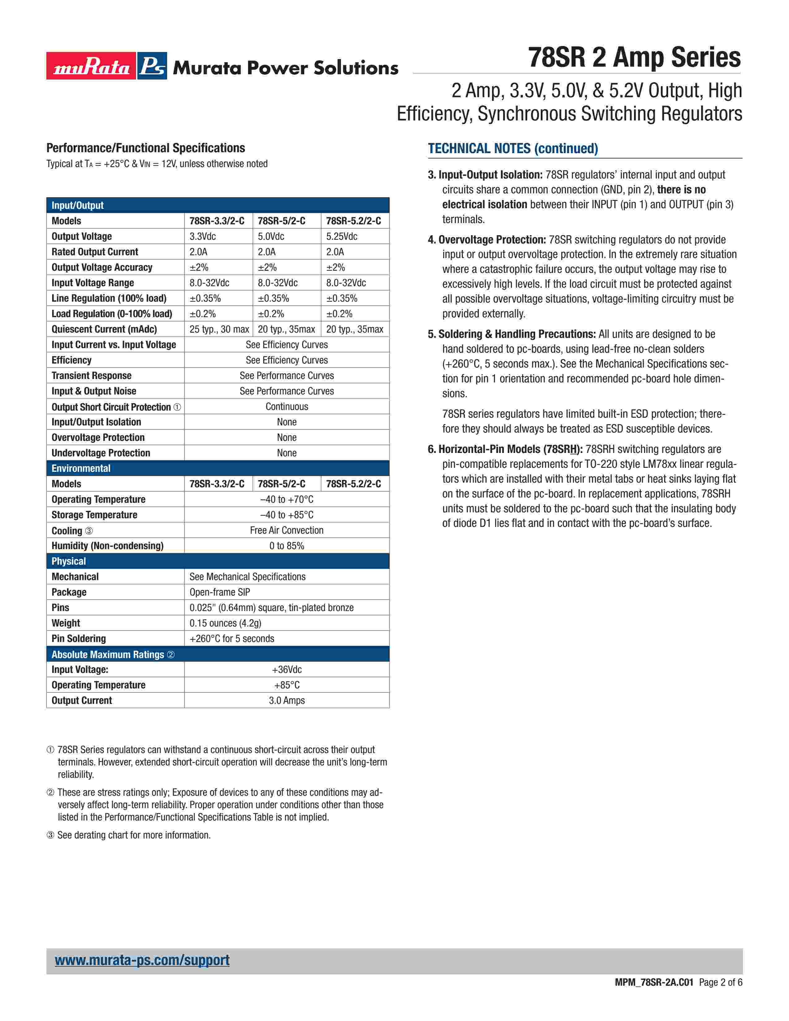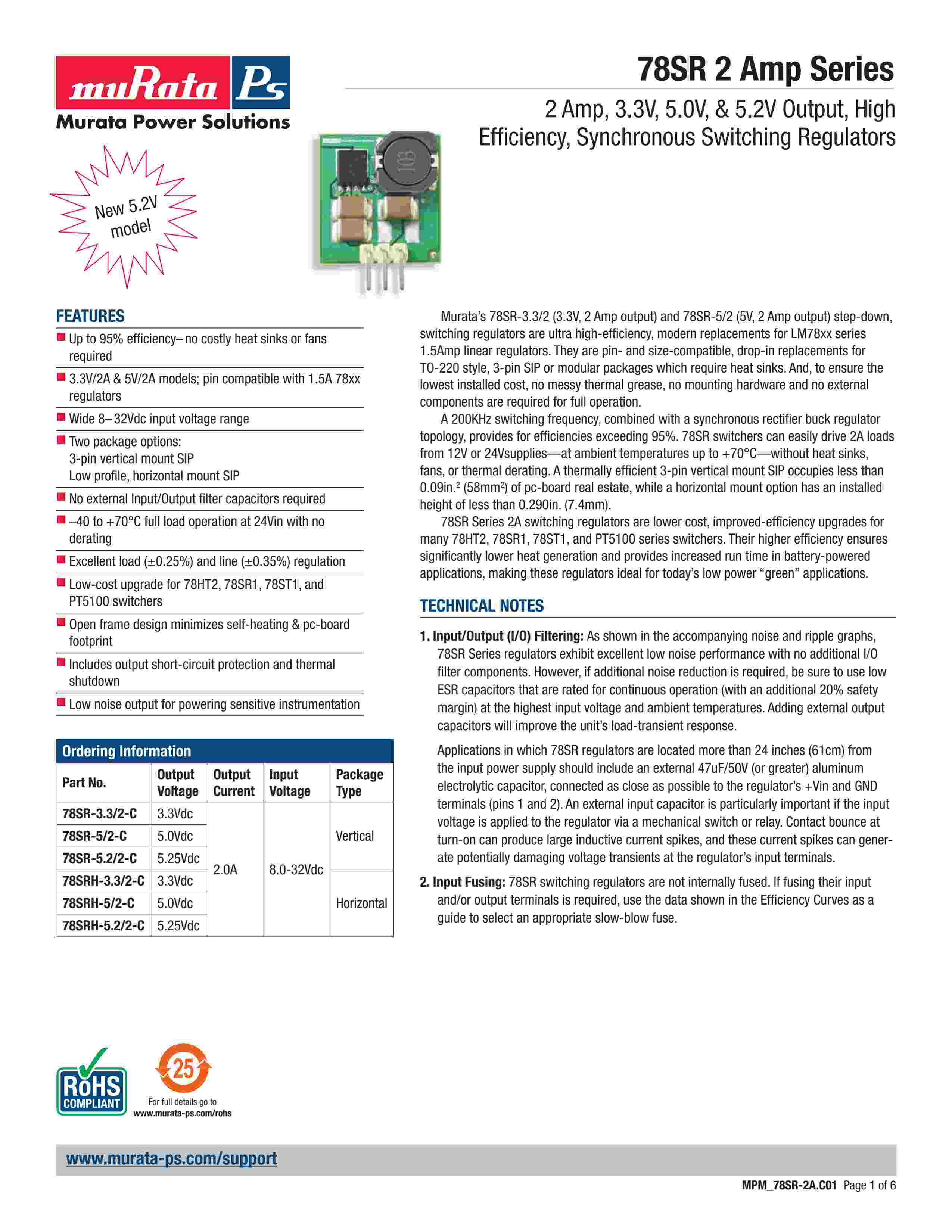 2 Amp, 3.3V, 5.0V, & 5.2V Output, High Efficiency, Synchronous Switching Regulators