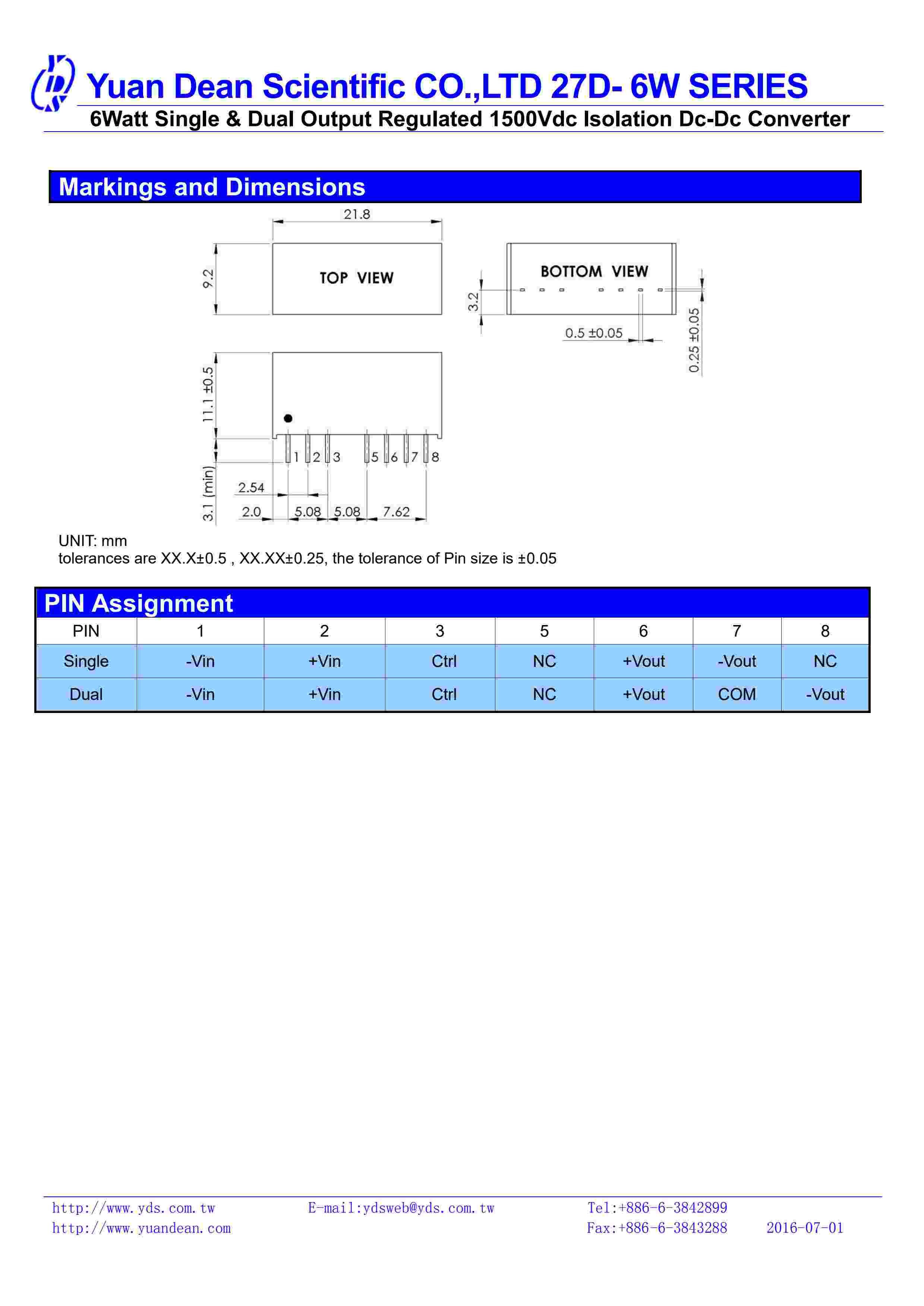 6Watt Single & Dual Output Regulated 1500Vdc Isolation Dc-Dc Converter