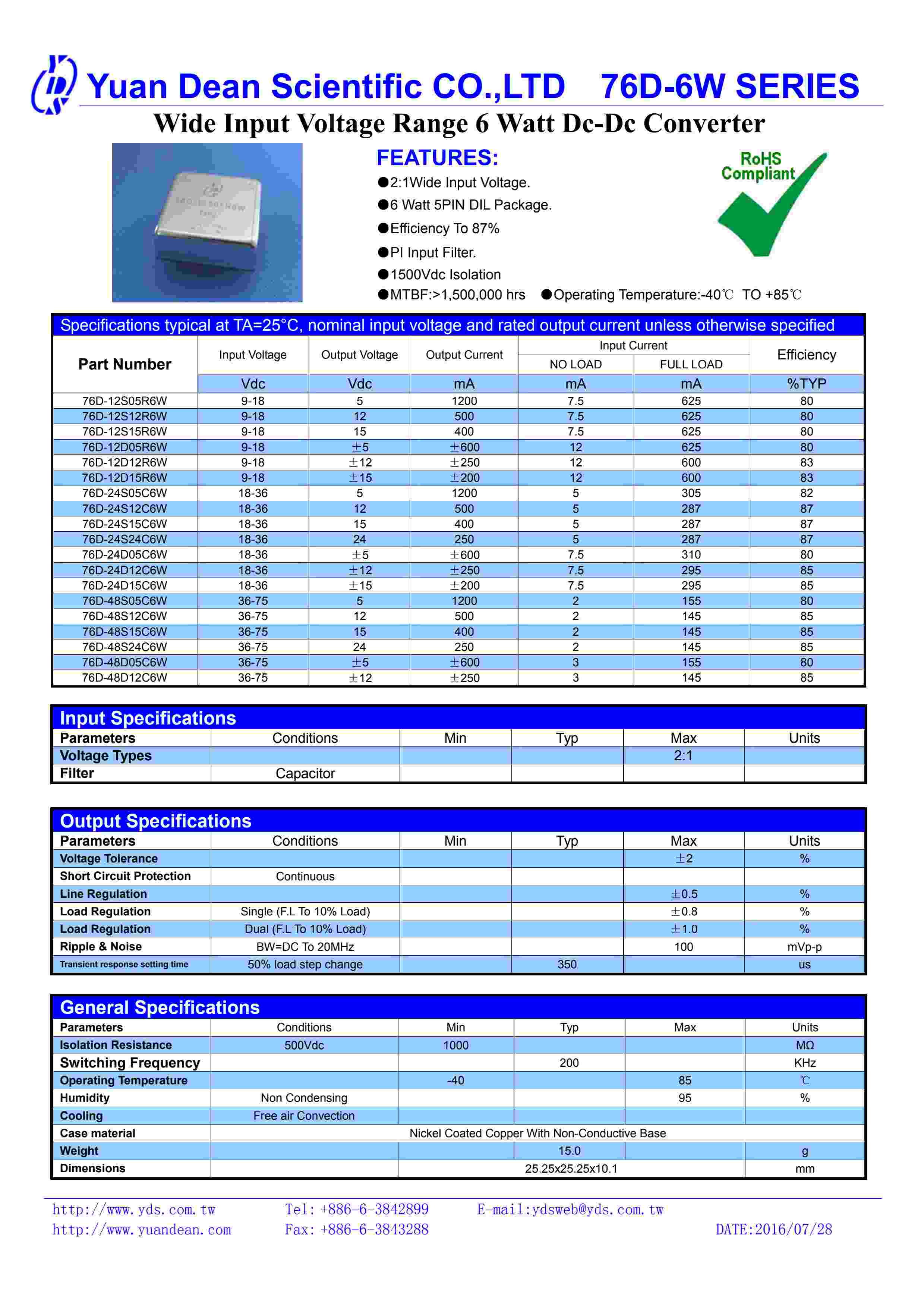 Wide Input Voltage Range 6 Watt Dc-Dc Converter