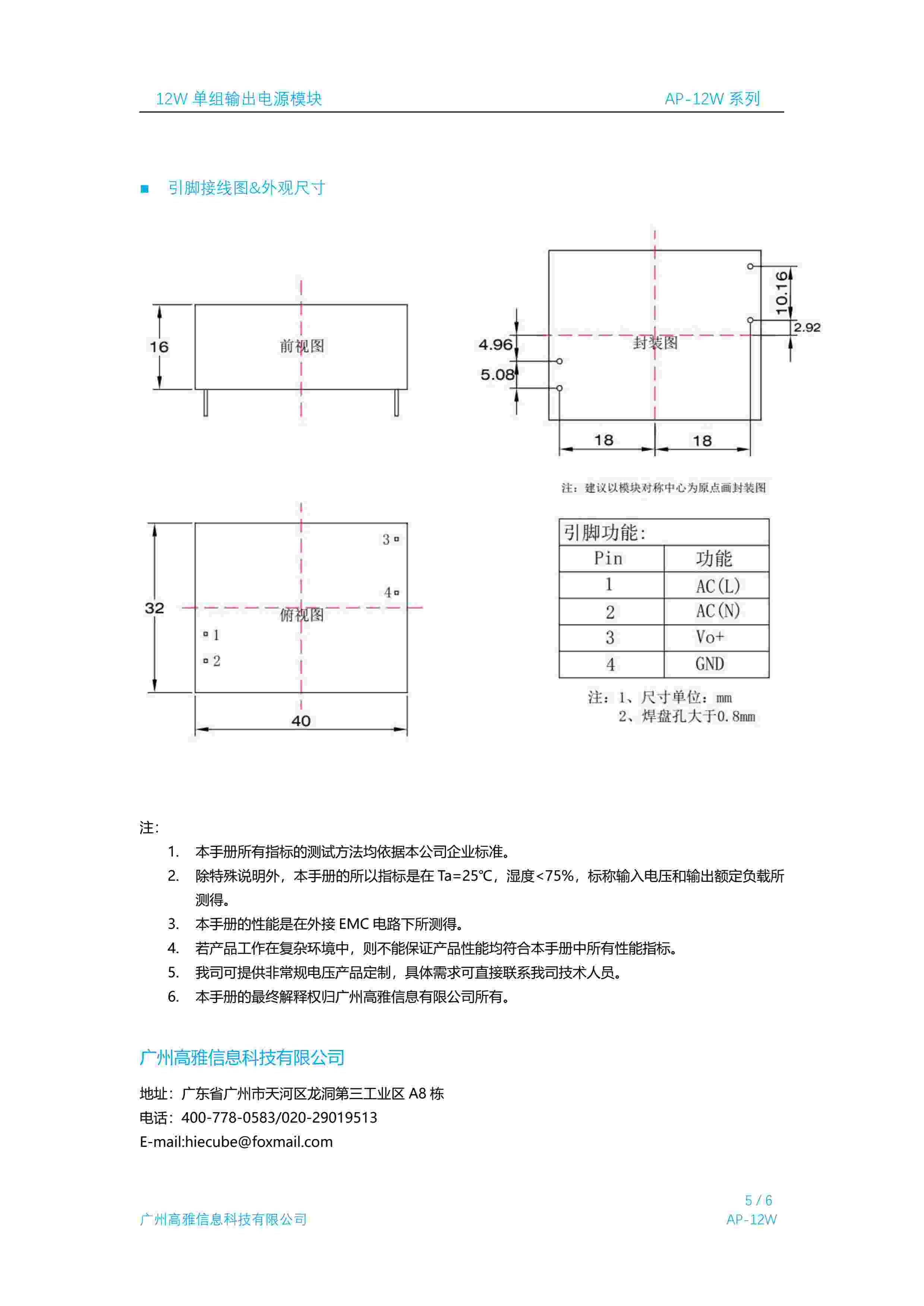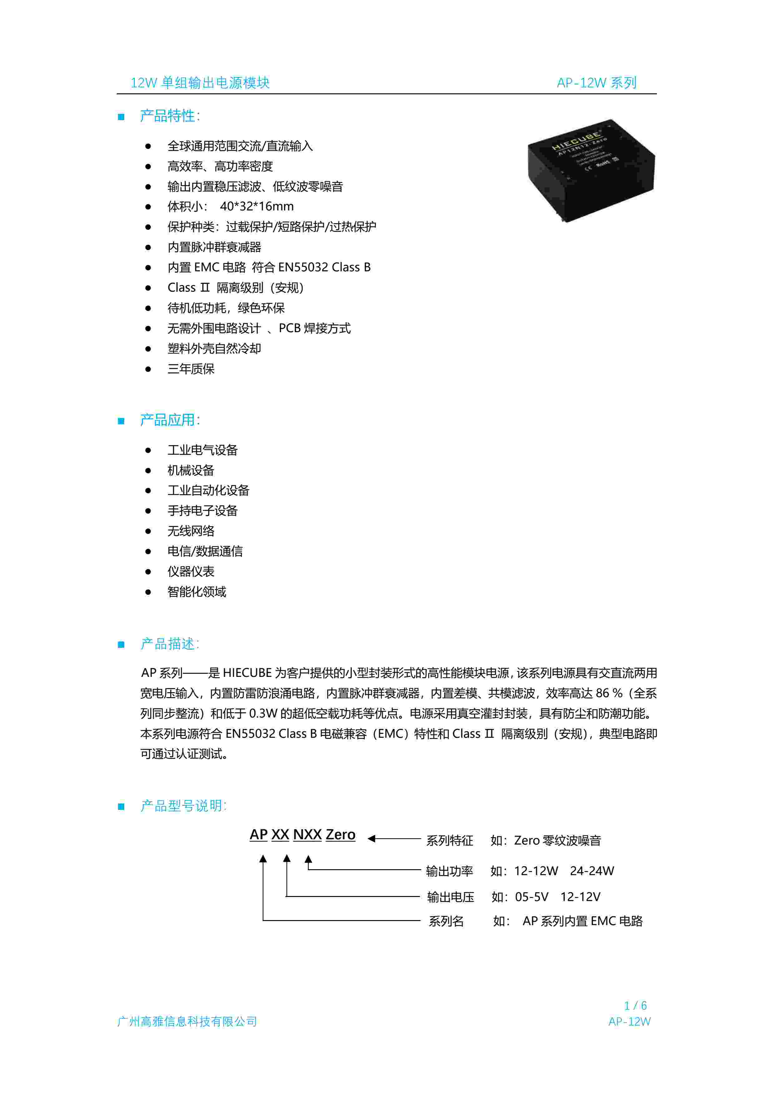 12W 单组输出电源模块