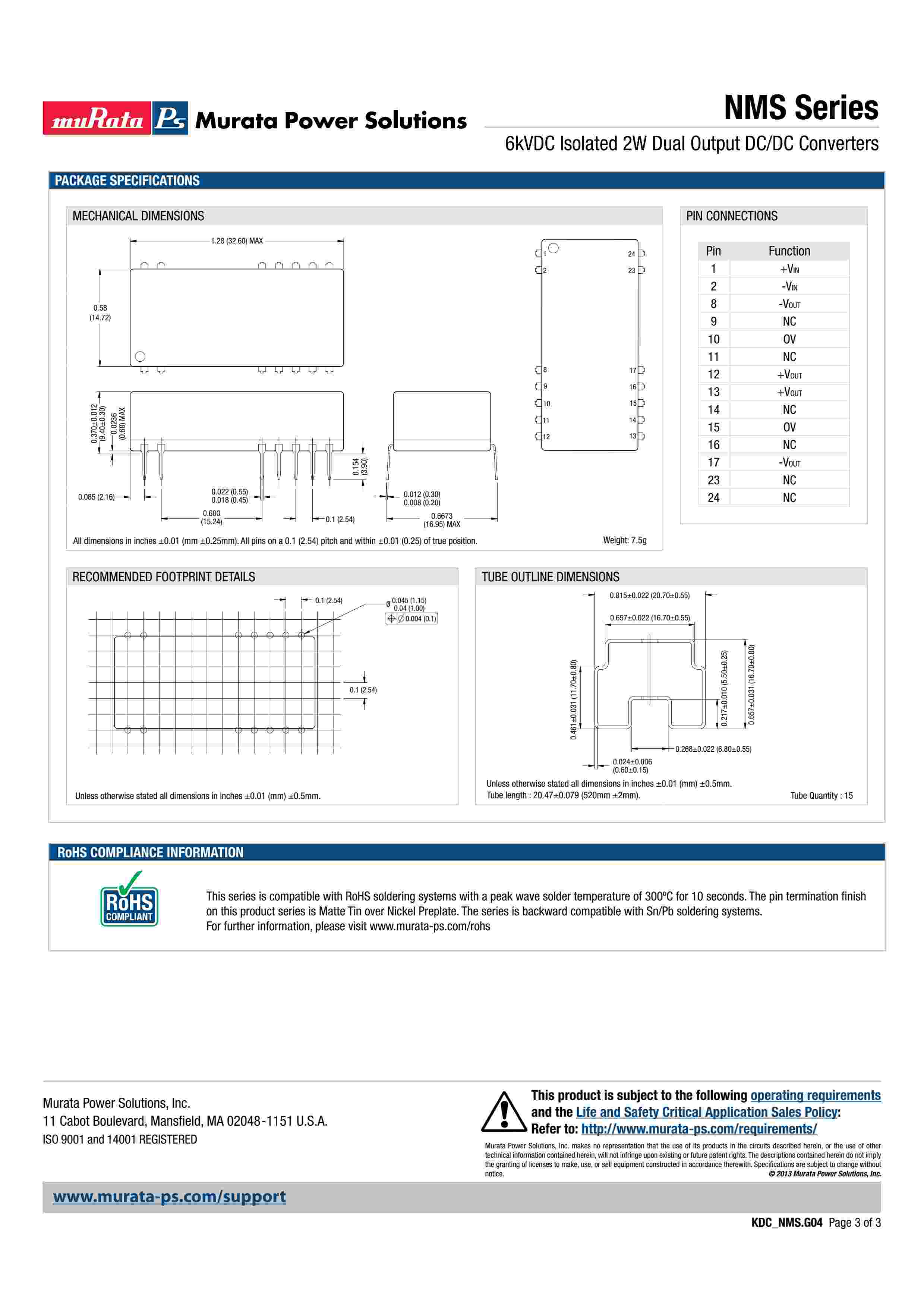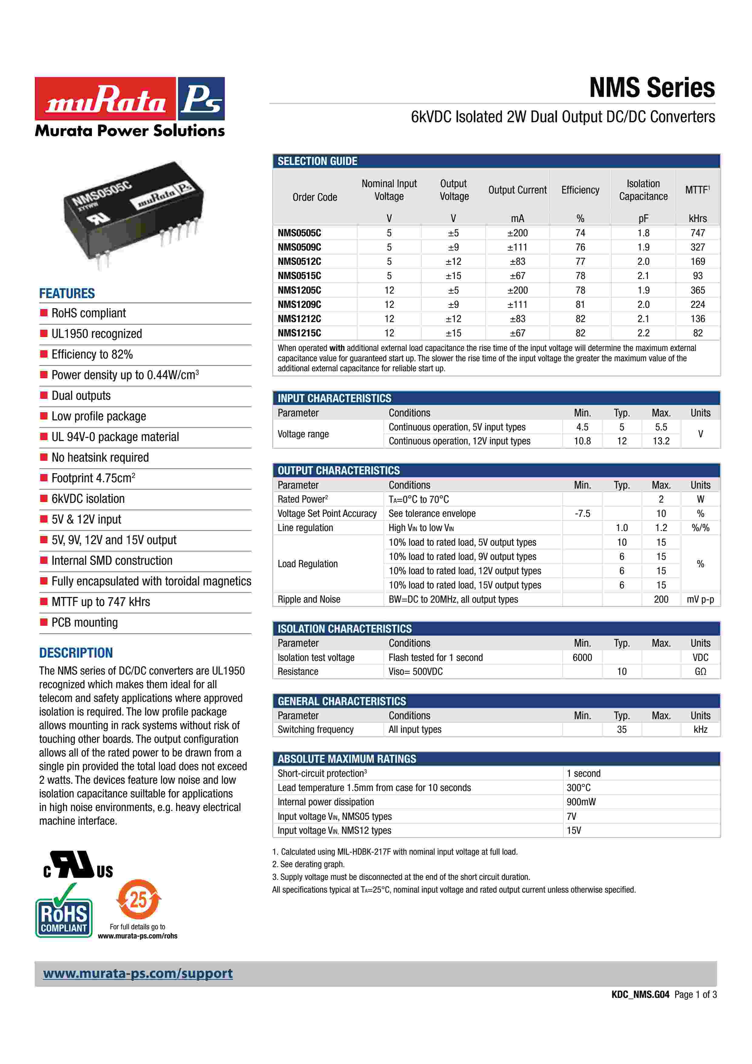 6kVDC Isolated 2W Dual Output DC/DC Converters